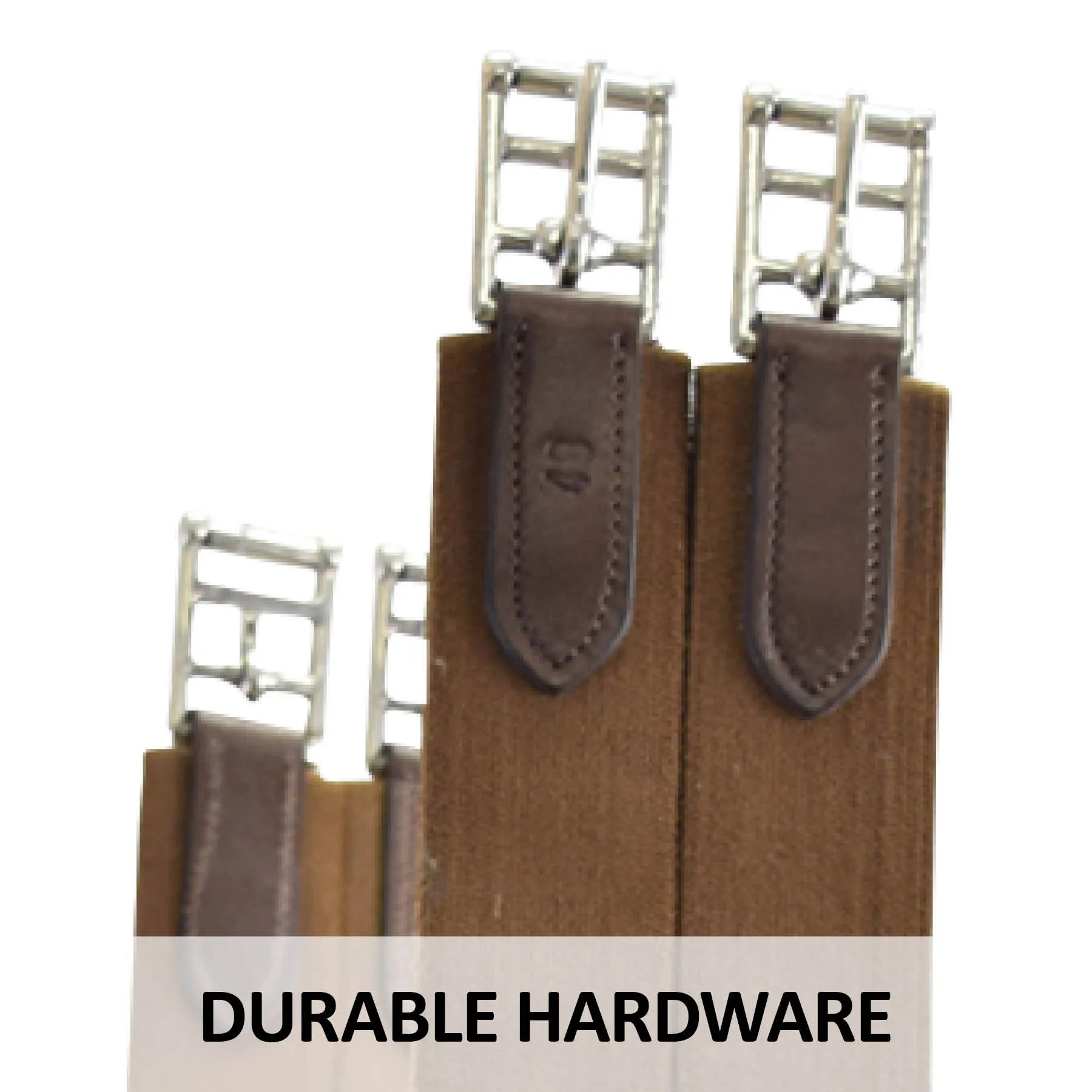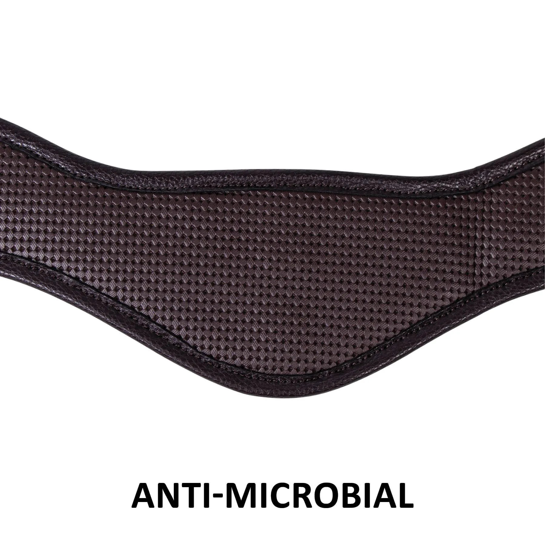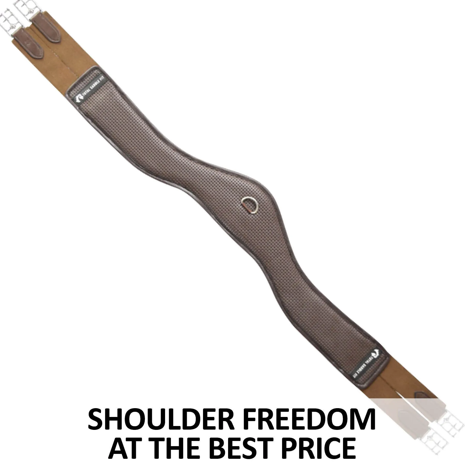 The synthetic version of the shoulder relief English girth allows for better shoulder freedom, better elbow clearance and the perfect anatomically-friendly design with antimicrobial and easy to clean material.