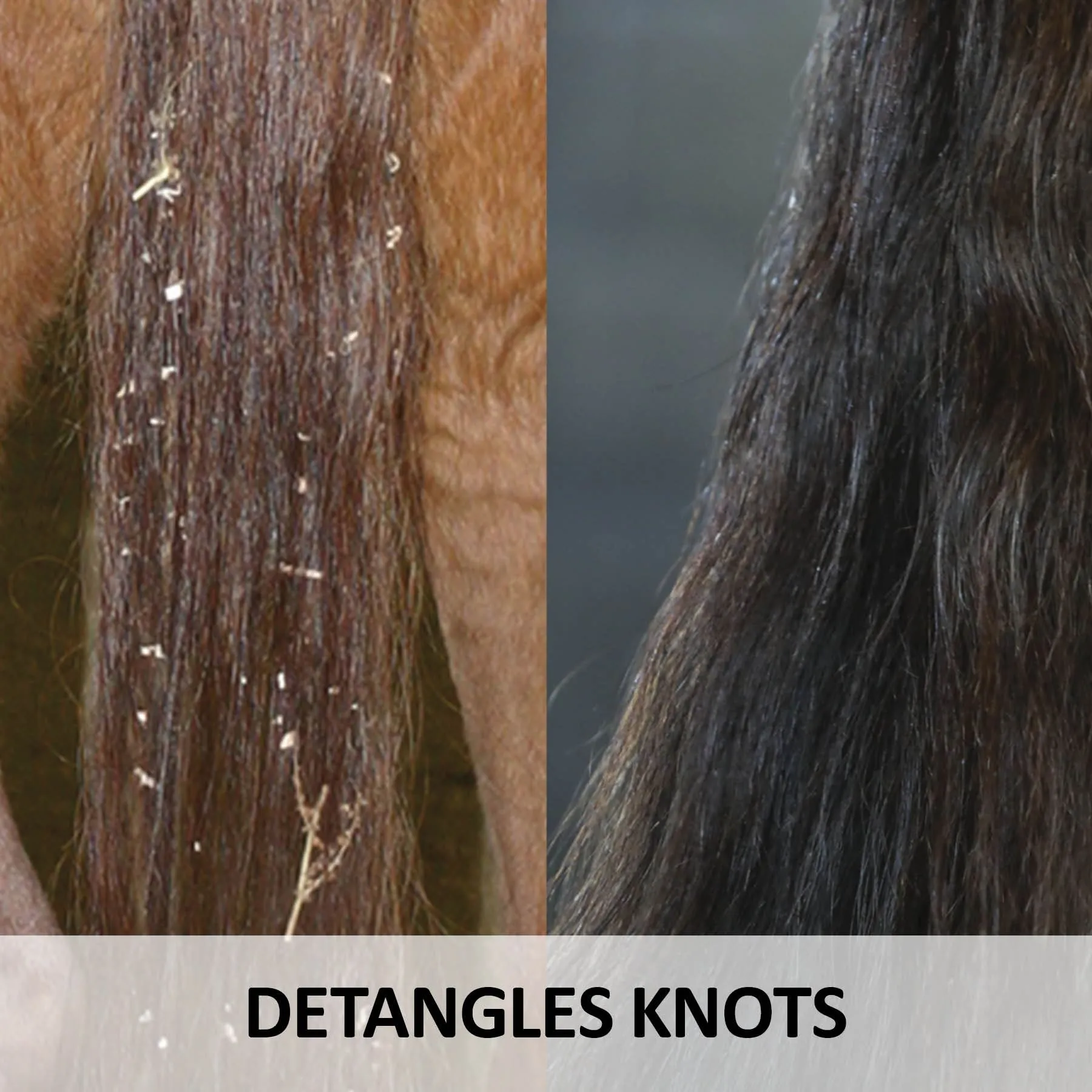 Strengthens hair fibers while working to keep them tangle free. Manes and tails are instantly shinier and conditioned, without causing damage.